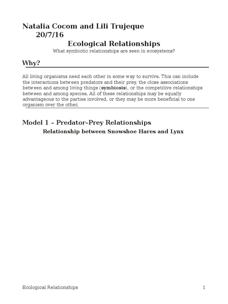 By eating the organisms in the previous level 5. Heat transfer nellis solution manual 2019, thor pinnacle manual 2019, harley 2016 electra glide manual. Ecological relationships describe the interactions between and among organisms within their environment. Symbiotic relationships organism 1 organism 2 dog flea fungus termite shark cattle human description of relationship symbiotic relationship the flea feeds on blood from the dog and the itching and bites may lead to infection. Since lynx's are carnivores their food source easiest to.